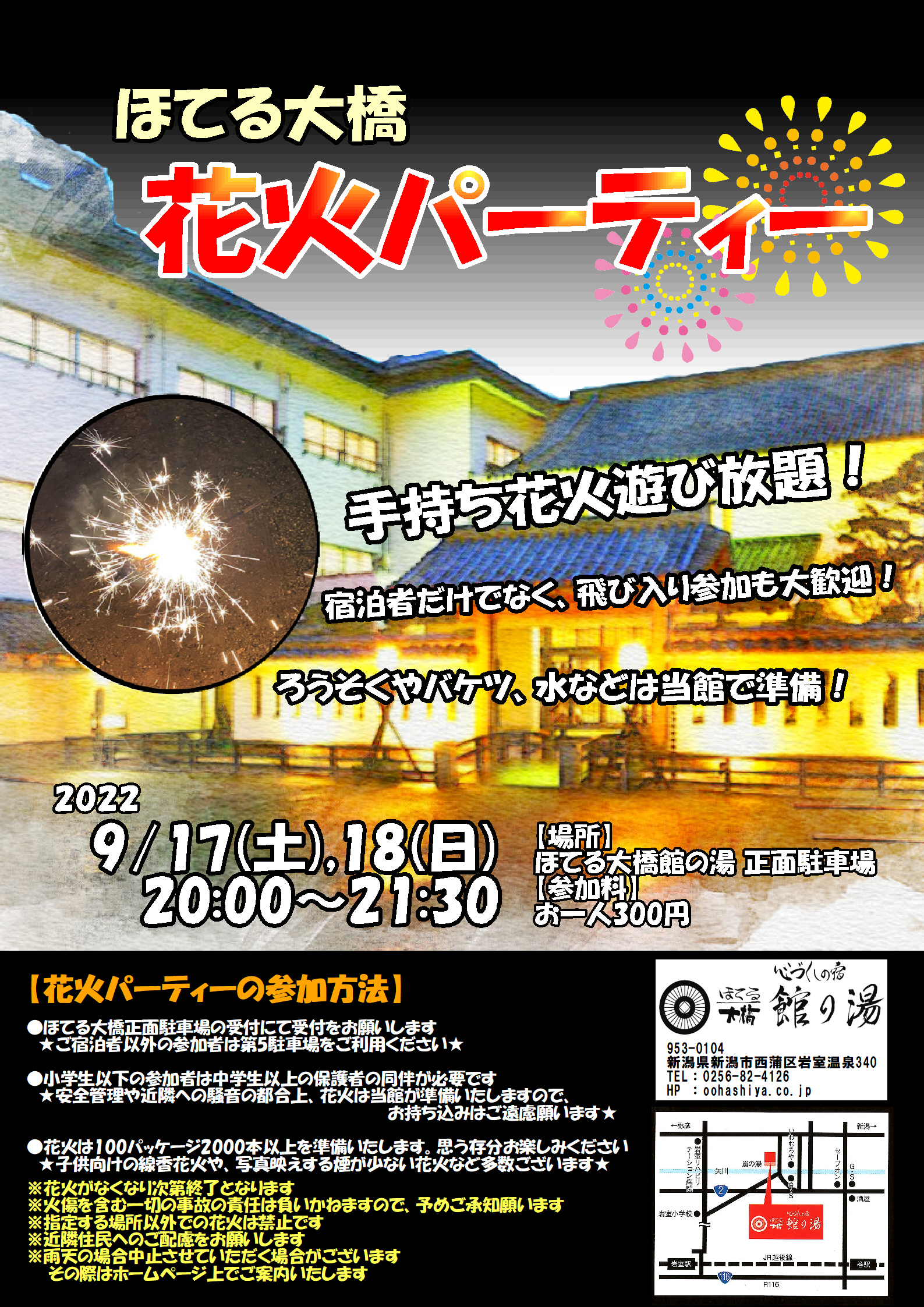 この度、ほてる大橋正面駐車場にて、「手持ち花火を存分に楽しんでいただけるイベント」を開催いたします。