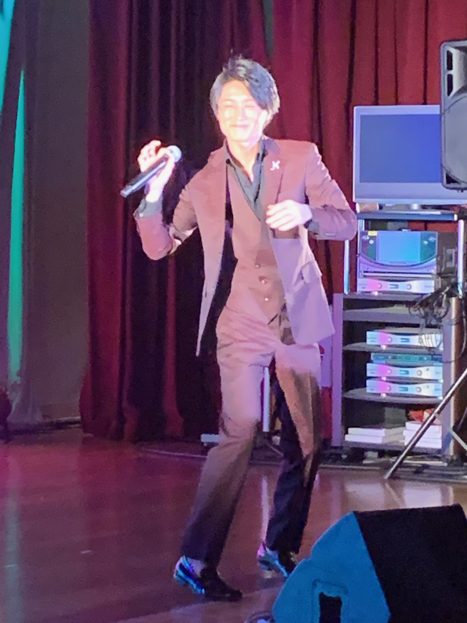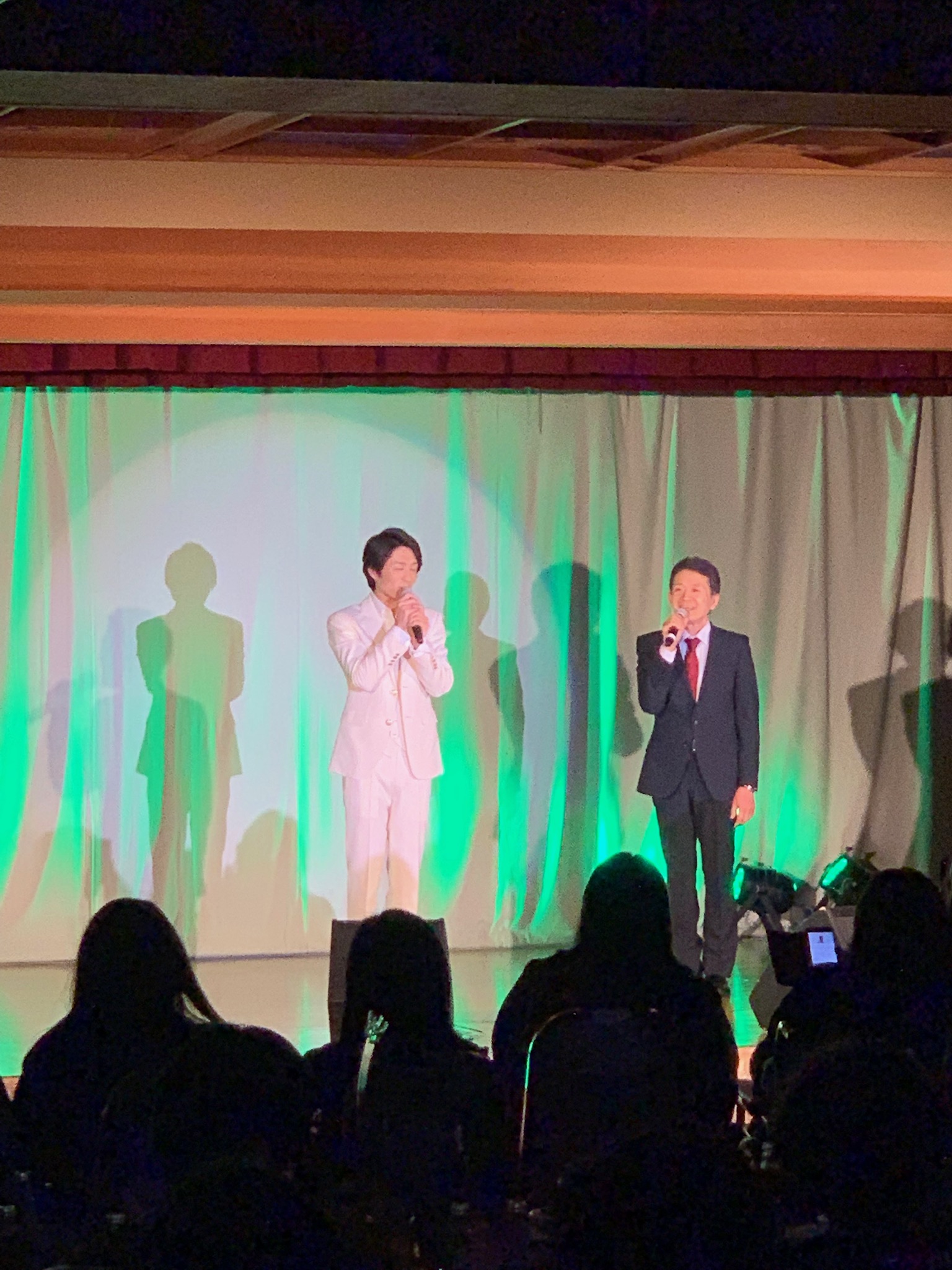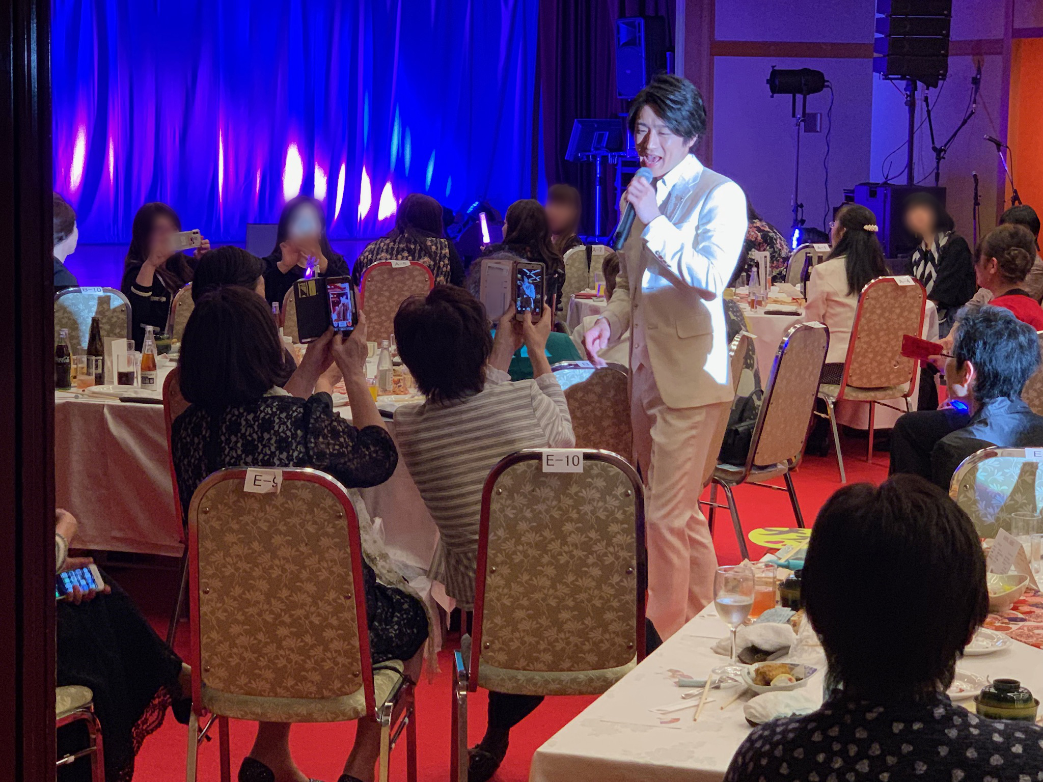 2019/3/6(水) ほてる大橋 館の湯にて 「真田ナオキディナーショー」が開催されました。 お越し頂きました皆さん、本当にありがとうございました。 真田ナオキさんのますますのご活躍を期待しております。 取り急ぎ皆さまにディナーショーの終了のご報告させていただきます。 今回が初めてのディナーショーということもあり、 音合わせ、打ち合わせを拝見していると・・・、大分緊張したご様子でした。 司会から紹介され入場された真田さん まだまだ緊張したご様子・・・歌い出したら、ノリノリのご様子♪